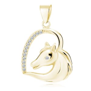 Първоначалната цена беше: 20.10 € / 39.31 лв..18.69 € / 36.55 лв. Текущата цена е: 18.69 € / 36.55 лв..Нежна и изящна висулка с конче, красиво разположено в сърцевидна рамка – символ на свобода, сила и обич, с цирконий Изработена от висококачествено сребро, тя е елегантна, хипоалергенна и подходяща за ежедневно носене. Фините детайли и изисканият дизайн я правят перфектен аксесоар за любителите на конете.