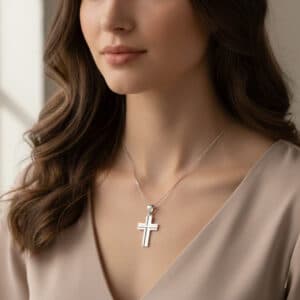 Първоначалната цена беше: 36.63 € / 71.64 лв..34.07 € / 66.64 лв. Текущата цена е: 34.07 € / 66.64 лв..Тази стилна висулка е изработена от висококачествено сребро с изчистен дизайн и полирана повърхност, която отразява светлината с мек блясък. Подходяща както за ежедневието, така и за специални поводи. Може да се комбинира с верижка по избор.