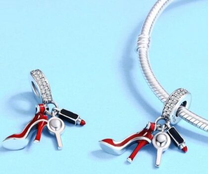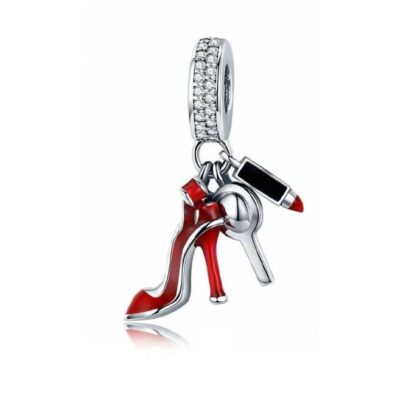 Кокетната страна на всяка дама включва високи токчета, червено червило и разбира се огледало, което да отразява красотата ѝ. А ако тези аксесоари са добавени към красиво сребърно бижу, идилията е пълна. За още повече разкош, основата, на която е захваната висулката, е изцяло декорирана с блестящи цирконий, а сребърните елементи са допълнени от червен и черен емайл. Подари на жена, която държи на външния си вид, зарадвай приятелка, която работи в сферата на красотата или пък освежи собствената си визия.