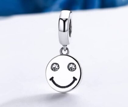 Сребърният талисман е с висящо кръгче, на което е изобразено лице с усмивка и очи от цирконий. На обратната му страна има надпис smile. Бижуто може да се постави на сребърна гривна и да напомня, че човек винаги трябва да бъде усмихнат, независимо от предизвикателствата на деня. То е оригинален подарък за колежка, за ученици или за дете. Носен самостоятелно или в комбинация от други талисмани, ще засияе и ще внесе още малко щастие.