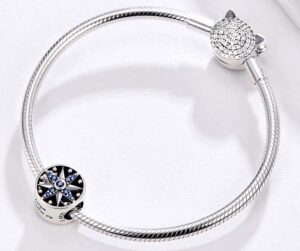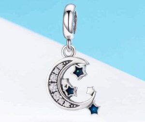 Полумесец с прикрепена към него звезда с черен цирконий в центъра е невероятен подарък за приятели, които са на разстояние един от друг. Талисманът е изработен изцяло от сребро 925 и може да се добави към гривна, за да е винаги на ръката и да напомня за любимите звездни срещи.