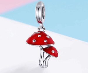 Висулката с двете гъби е изработена от сребърни пънчета и шапки от червен емайл. Закачлива и свежа, тя може да се превърне в израз на любовта към природата или пък да ѝ се придаде по-дълбок смисъл – мил жест към майка, която е винаги е до дъщеря си. Придава индивидуалност и колорит във всяка комбинация с различни бижута. Мил подарък за осми март или пъри юни.