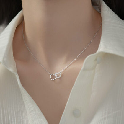Красиво, нежно и минималистично колие от сребро. Изработката му е най-високо качество и представлява класическа плетка с две преплетени сърца. За повече блясък и шик, едното от тях е инкрустирано с блестящи камъни. Колието носи послание за сплотеност и обич, затова може да се превърне в скъп подарък за любим човек или просто да отличиш стила си.