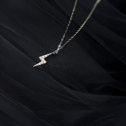 Атрактивно минималистично колие от сребро 925, с което всяка дама ще разчупи и освежи визията си. На ситна класическа основа е прибавена висулка във формата на светкавица с декорация от блестящи цирконий. Колието е едновременно семпло и модерно, като позволява да бъде носено както в ежедневието, така и за специален повод. Избери за себе си или зарадвай любимата жена.