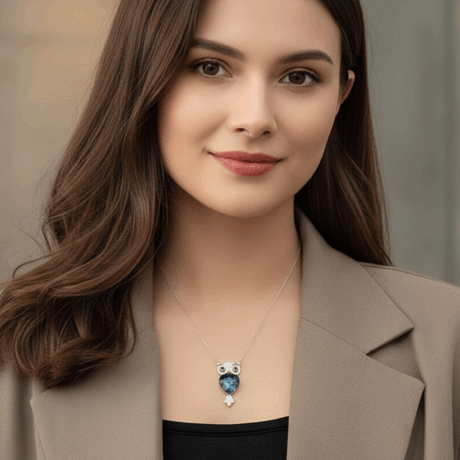 Освен с познания и мъдрост, совата се приема и като покровителка на нощта, защото тогава дарбата ѝ е най-силна. Неслучайно тази мистична птица е основен акцент на сребърното колие с кристал Swarovski. Бижуто е с прецизна сребърна изработка, като главата и опашката са допълнени с бели камъни, за по-голяма детайлност очите са от черни, а тялото е под формата на голям изящен кристал. Цялостният дизайн на колието носи послание за смелост и надежда, че дори сред тъмнината има светлина. Подари за дипломиране, започване на образование или просто като добро пожелание за любим човек.