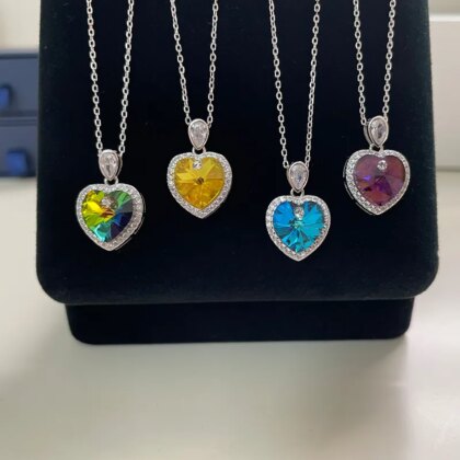 Три сърца, изработени в едно бижу, за да изразят нарастващата любов, неподвластна на времето. Тази идея е закодирана в сребърното колие, с класическа плетка и красива сребърна висулка. Украшението привлича мигновено погледа с формата си, започваща с малък сребърен контур-сърце, към който е захванат по-голямо и обсипано с циркониеви камъни и накрая завършва с голямо кристално сърце Swarovski. Подарена на любимата жена, сребърната верижка засвидетелства любовта и е подходяща за всеки повод.