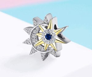 Вселената е необятна, какъвто е и блясъкът от талисмана, обсипан с бели, тюркоазени и черни цирконий. Той е в обла форма и подредбата на камъните изобразява човешко око. По страните на талисмана има и кръгли очертания, които само подсказват за необятния му край. Бижуто е подходящо за носене на гривна и би зарадвало всяка жена. Подарява се с пожелание за откриване на късмета, любовта и всичко онова, което човек не може да види с просто око.