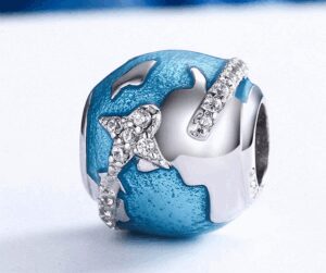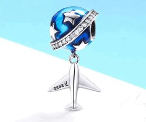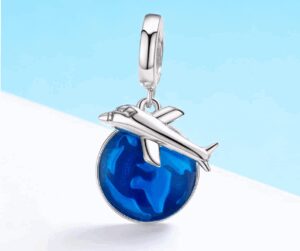 За пътешествениците по дух е създаден този невероятен сребърен талисман. Самолет, който се издига над планетата Земя, а тя, направена от приковаващ погледа син емайл. От обратната страна на висулката има надпис Once a year, go someplace you`ve never been before. С послание и добри мисли, може да се превърне в подарък за абитуриент, за Нова година или за специален повод.