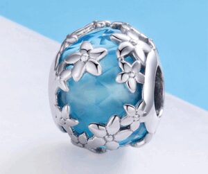 Мултифункционалността на бижутата ги прави идеални за носене в ежедневието или при по-специални поводи. Точно такъв е и талисманът от сребро, покрит със светлосин цирконий и сребърни цветя. Той може да бъде поставен на гривна или верижка и да стои еднакво нежно. Деликатните елементи и точният подбор на цвят го правят комбинативен с всяка визия. Може да направиш подарък за себе си, за мама или за любимата приятелка.