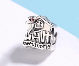 Домът е там, където е и сърцето, но може да си припомняш за него всеки път, когато погледнеш талисмана за гривна във формата на къща. Той е гравиран така, че да се откроят прозорци, врата, огради и балон сърце, инкрустиран с червен камък цирконий. Под къщата има и надпис sweet home, който подсеща колко прекрасно е у дома. Бижуто от сребро може да се подари на майка, на дъщеря, която живее надалеч или като символичен подарък при купуване на ново жилище, при отбелязване на сребърна или друга годишнина от сватба или юбилей.