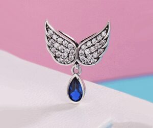 Амулет, символизиращ закрилата от ангелите. Подарява се на любим човек, който винаги да бъде защитен. Талисманът е изработен от сребро 925 и е във формата на криле, които са обсипани с циркониеви камъчета. От бижуто се спуска и нежна висулка, която наподобява сълза и е запълнена от тъмносин цирконий. Комбинацията от благородния метал и цветните камъчета го прави нежен и съчетаем с гривна или синджир.