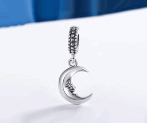 Всеки синджир или гривна се нуждае от нежно украшение. Такова е и сребърната висулка във форма на полумесец. Върху Луната са изобразени чертите на човешко лице, което е усмихнато. Основата на талисмана, към която е прикрепена висулката, е гравирана със сребърни кръгли форми, които придават усещането за звездно небе. Подходящ е за хората, които обичат смеха и за дамите, които искат да подчертаят женствената си същност.