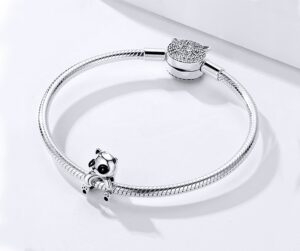 Сребърен талисман под формата на грижовна панда изразява безгрижие, доверие и приятелско отношение. Затова е подходящ подарък за дете и близък човек. Бижуто е украсено от черен емайл, а малки сребърни елементи придават блясък в очите на мечето. Може да се носи на сребърна гривна за талисмани.
