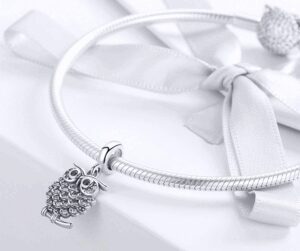 Совата символизира познанието и мъдростта. Неслучайно свещената птица е вдъхновила този талисман, който изразява успеха и бележи пътя до върха. Бижуто е прецизно изработено от сребро и богато украсено с бели камъни цирконий. За по-голяма детайлност и дълбочина очите на совата са от черни циркониеви камъни. Талисманът може да бъде носен на сребърна гривна или верижка. Подходящ подарък за дипломиране.