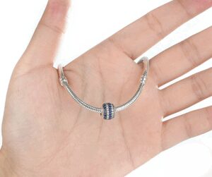 Сребърен талисман със сферична форма. Богато украсен с редуващи се бели и сини камъни цирконий. Бижуто придава разкош на всяка визия и акцентира върху индивидуалния стил. Според вкуса може да бъде носено както на гривна, така и на колие. Изискан подарък, подходящ за всяка дама, която иска да се чувства и изглежда добре.