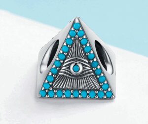 Екстравагантният талисман може да допълни визията на верижка около врата̀ или на гривна. Той е изработен от сребро и изобразява пирамида с всевиждащото око, от което няма тайни. Триъгълната форма е подчертана чрез светлосини цирконий, които приковават погледа върху бижуто.