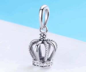 Всяка жена е достойна да бъде кралица, изразява красивият сребърен талисман. Бижуто е изработено под формата на корона, чиято основа е инкрустирана с малки циркониеви камъни в бяло. Талисманът е съвместим с гривна или колие. Подходящ е за личен подарък към кралицата на бала, кралицата на семейството или просто кралицата на живота.