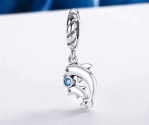 Висулката от сребро, изобраздяваща два делфина с различна големина и движещи се в една посока, описва златната среда и баланса. Точно затова между тях има топка от морскосин цирконий, а за очи са вложени бели камъчета. Сребърното бижу има и халка, която е с двуцветна окраска и позволява поставянето на синджир или гривна.