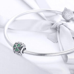 Елегантен и стилен талисман от сребро, който включва символите на късмета – детелини. За по-голямо изящество едната от тях е с по-голяма форма и е инкрустирана със зелени цирконий. Модният аксесоар е идеален за всеки, който търси малко повече късмет и щастие в живота си. Подари на любим човек като израз на тези пожелания.