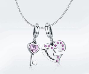 Сребърният талисман е съставен от две части – сребърен ключ с розов камък цирконий и сребърно сърце, обсипано с малки цирконий в розово и надпис forever. В талисмана-сърце липсва част, която е съвпада с тази на ключа. И двата елемента са съвсем отделни, но когато се съединят се получават голяма и завършена висулка. Двете части на бижуто могат да бъдат носени заедно или да се разделят и да се подарят на любима, най-добра приятелка, майка или друга, скъпа на сърцето дама.