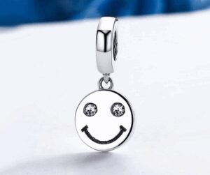 Сребърният талисман е с висящо кръгче, на което е изобразено лице с усмивка и очи от цирконий. На обратната му страна има надпис smile. Бижуто може да се постави на сребърна гривна и да напомня, че човек винаги трябва да бъде усмихнат, независимо от предизвикателствата на деня. То е оригинален подарък за колежка, за ученици или за дете. Носен самостоятелно или в комбинация от други талисмани, ще засияе и ще внесе още малко щастие.