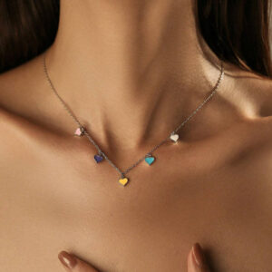 Кокетно сребърно колие, което ще озари и внесе настроение към всеки стил. Представлява нежна класическа верижка, на която са разположени 5 сърца с различен по цвят емайл. Колието е вдъхновено от визията на любимата на всички кукла и е подходящо както за жени, така и за по-малките госпожици.