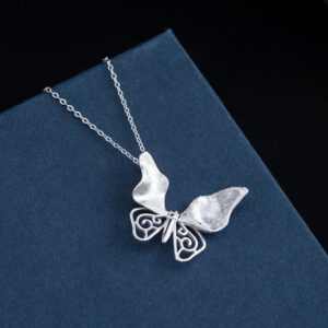 Ефектно дамско колие от сребро 925 с форма на красива пеперуда. Носи послание за постигане на мечтите с красота и изящество. Може да се съчетае с обеци или гривна с талисман в подобен дизайн.