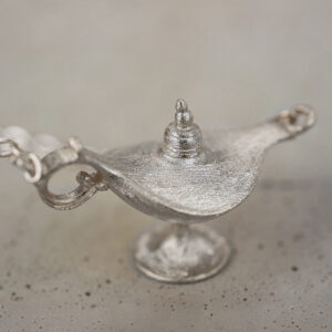 Това изящно колие представлява вълшебната лампа на Аладин, изработена от висококачествено сребро (925 проба). С изчистен и елегантен дизайн, лампата символизира магията и мечтите. Колието е идеално за тези, които искат да добавят нотка магия към своя стил. Този уникален бижутериен аксесоар ще бъде прекрасно допълнение към всяка колекция и чудесен подарък за близък човек.