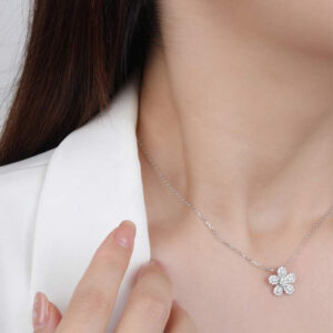 Това изключително елегантно колие е перфектният аксесоар за всеки повод. Изработено от висококачествено сребро 925 проба, колието представлява нежно цвете, инкрустирано с блестящи кубични циркониеви камъни. Всяко листенце на цветето е внимателно покрито с малки цирконий, които придават невероятен блясък и изисканост.