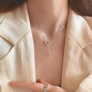 Дизайнът на колието е минималистичен и елегантен, с тънка верижка, която води до изящен кръгъл акцент. Тази композиция създава усещане за баланс и хармония, подходяща както за ежедневието, така и за специални поводи. Колието е леко и удобно за носене, като подчертава естествената красота и елегантност на всяка дама.