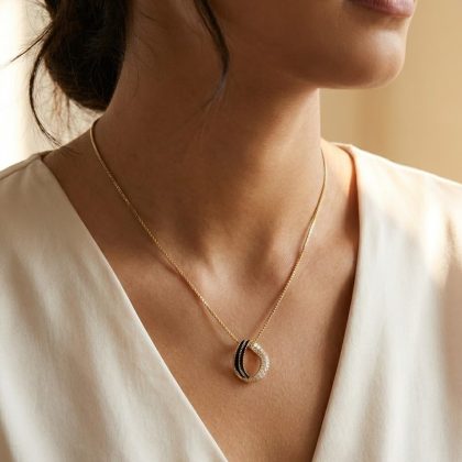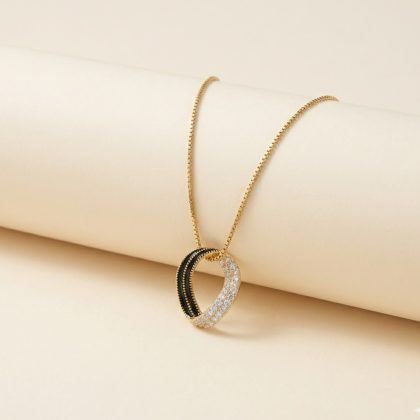 Това изискано колие, изработено от проба 925 сребро, впечатлява с уникален контрастен дизайн. Черният и блестящият циркониев елемент се преплитат, създавайки елегантен баланс между стил и лукс. Идеално допълнение към всяка визия, това бижу ще ви дари с неотразим блясък и чар. Подходящо както за ежедневието, така и за специални събития, колието е символ на финеса и класата.