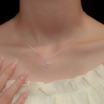 Това изящно сребърно колие във формата на самолет е перфектният аксесоар за любителите на пътуванията и приключенията. С инкрустирани циркониеви камъчета по крилата, колието блести нежно, добавяйки фин лукс към всяка визия. Минималистичният дизайн го прави идеално допълнение за ежедневието или специален повод, подчертавайки свободния дух на притежателя му.
