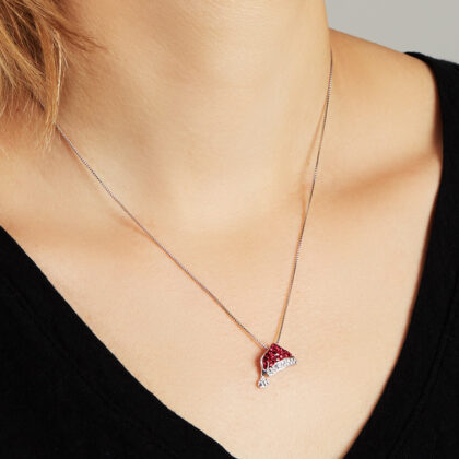 Това изящно коледно колие с блестящи циркони излъчва празничен дух. Червената коледна шапчица е символ на радост и топлина, докато кристалите добавят блясък, който ще ви накара да сияете през цялата зима.