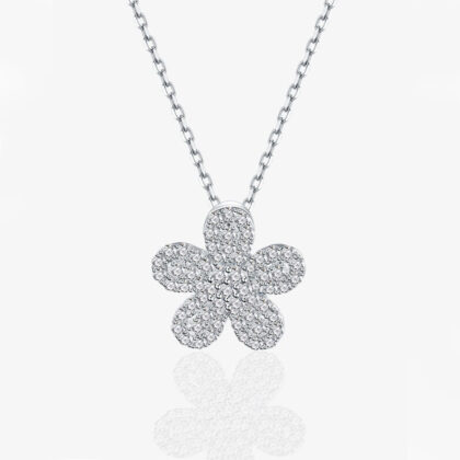 Това изключително елегантно колие е перфектният аксесоар за всеки повод. Изработено от висококачествено сребро 925 проба, колието представлява нежно цвете, инкрустирано с блестящи кубични циркониеви камъни. Всяко листенце на цветето е внимателно покрито с малки цирконий, които придават невероятен блясък и изисканост.