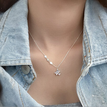 Игриво и уникално бижу, което добавя радост и чар към всяка визия. Основният акцент на колието е сребърна висулка във формата на пъзел, украсена със симпатично усмихнато лице. Допълнителен елемент са трите малки усмивки, които са дискретно вградени във верижката, символизиращи щастие и позитивност. Това колие е идеалният аксесоар за хора, които обичат да носят нещо различно и оригинално. Подходящо както за ежедневието, така и за специални поводи, Ще ви напомня винаги да намирате радостта в малките неща и да разпръсквате усмивки около вас.