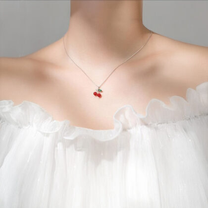 Очарователно и игриво бижу, което ще добави свежест и радост към вашата визия. С нежна сребърна верижка и висяща висулка във формата на две блестящи череши, това колие е символ на сладост и елегантност. Идеално за ежедневна употреба или като акцент към лятна визия е перфектният аксесоар за тези, които обичат да изразяват своята индивидуалност чрез бижутата си.