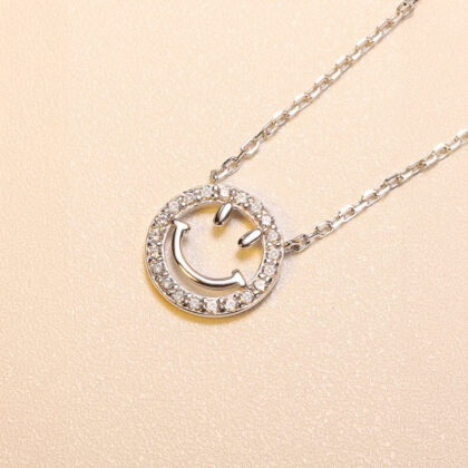 Забавно и позитивно бижу, което ще добави радост и блясък към всяка визия. Представлява кръгла висулка във формата на усмихнато лице, обсипана с блестящи кубични цирконий. Това колие е перфектният аксесоар за хора, които обичат да носят нещо различно и весело, като същевременно остават елегантни. Чудесен подарък за любим човек или за самата вас, напомняйки винаги да носите усмивка на лицето си и в сърцето си.