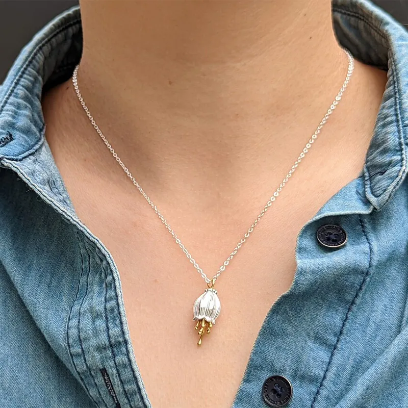 Лотосът е символ на чистотата, целомъдрието и хармоничния баланс. Освен с посланието си, изпъква и с красив цвят, който е увековечен от сребро 925 в красиво колие. Формата на сребърения лотос е триизмерна, като тичинките са в жълто. Комбинацията на двата цвята подчертава красотата му и същевременно го прави лесно комбинативен с всяка визия. Може да бъде подарено за дипломиране или друг личен повод.