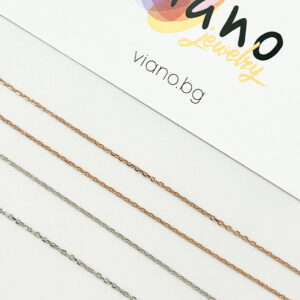 Тази изискана верижка впечатлява със своя фин и изчистен дизайн, което я прави идеален аксесоар за всеки повод. Изработена с внимание към детайла, тя съчетава деликатна елегантност с универсална естетика, подходяща както за ежедневието, така и за специални събития. Перфектна за носене самостоятелно или в комбинация с любимото ви висулка, тази верижка ще добави нотка изтънченост към всяка визия.