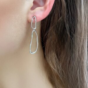 Тези сребърни обеци впечатляват с модерния си и артистичен дизайн. Нестандартните абстрактни форми придават усещане за свобода и индивидуалност, а фината изработка гарантира лекота и комфорт при носене. Подходящи са както за ежедневни тоалети, така и за специални поводи, добавяйки нотка артистичен минимализъм към всяка визия.