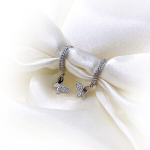 Обици тип халки и декорирани с малки, нежни пеперуди. Те са изработени от сребро с проба 925 и са инкрустирани с блестящи цирконий, придаващи допълнителен чар и блясък. Този модел е подходящ за ежедневно носене, но също така е достатъчно елегантен, за да придаде изящество и стил на всеки специален момент.