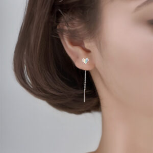 Любовта има много цветове, а ти може да ги имаш всички под формата на висящи сребърни обеци. Представляват класическа плетка, завършваща със сребърно сърце, в което сякаш се е събрала цялата дъга. Моделът се поставят чрез промушване, като дължината му може да се регулира и според предпочитанията да се избира размерът на висящата част отпред и отзад. Модерният и свеж дизайн на обеците може да внесе настроение както в ежедневието, така и във вечерно излизане.
