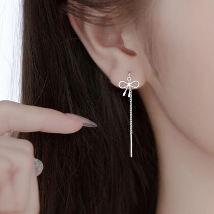 Тези деликатни висящи обеци с панделки са създадени за дамите, които обичат изтънчеността и елегантността. Изработени от висококачествено сребро проба 925 са идеалното допълнение към всяка визия, добавяйки женствен чар. Те са идеални за подарък или за собствено удоволствие, носейки усещане за нежност и стил.