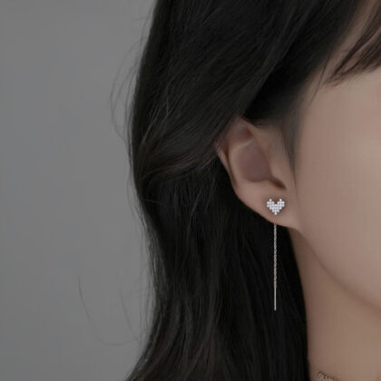 Оформени като блестящо сърце с кубични цирконий и тънка сребърна верижка, тези обеци са перфектният аксесоар за специални случаи или за добавяне на нотка на лукс в ежедневието. Подчертават нежността и романтичната натура на всяка дама, която ги носи. Идеалният избор за тези, които искат да изразят своята любов и стил чрез бижутата си.