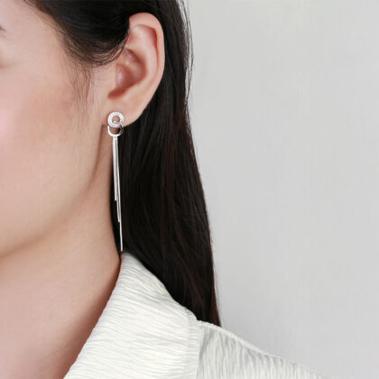 Тези стилни обеци, изработени от сребро проба 925 и инкрустирани с циркониеви камъни, съчетават елегантност и нежност. Подходящи както за официални поводи, така и за ежедневни елегантни визии, тези обеци ще ви превърнат в център на внимание.