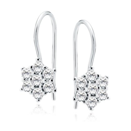 Нежни висящи обеци от сребро във формата на цвете, инкрустирани с блестящи циркониеви камъни. Елегантни и леки, те са изключително удобни за носене, с хипоалергенна изработка, безопасна за чуствителна кожа. Идеални за специални поводи или ежедневна нежна визия, тези обеци са прекрасен подарък, който ще зарадва всяка дама с фин и изискан стил.