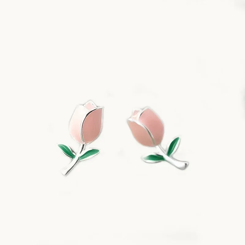 Знаеш ли, че значението на лалето е за съвършена любов? Затова ти го предлагаме под формата на сребърни обеци, които ще предизвикат усмивката на всяка дама. Бижутата са нежни, фини и минималистични. Допълнени са с розов и зелен емайл, който им придава весел и атрактивен вид. Покани цветното настроение с тях или направи запомнящ се подарък на жена, дъщеря, дете.