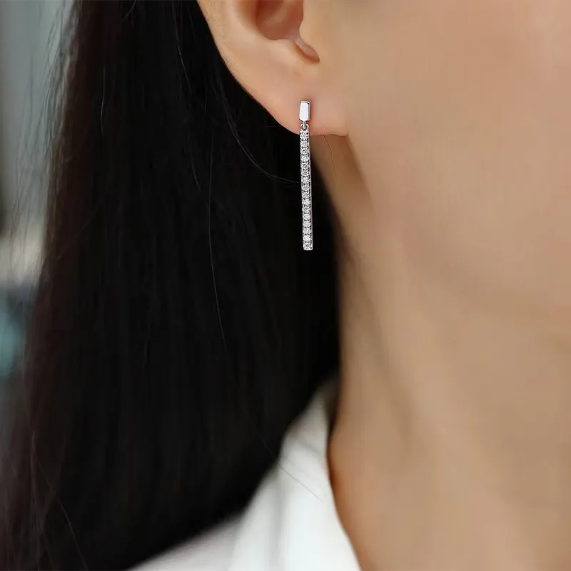 Сребърни обеци със спускащи се под ухото халки и блестящи цирконий. Удобни са за носене поради компактните размери и стабилното закопчаване на винт. Красиво и атрактивно бижу, което да озари всяка визия и да зарадва всяка дама.