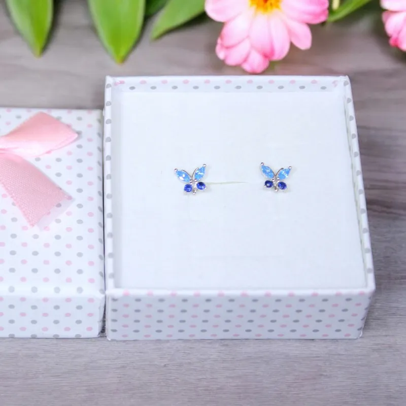 Нежни и изящни сребърни обеци с форма на пеперуда, чиито криле са инкрустирани с блестящи циркониеви камъни. Символ на свобода и красота, тези обеци са изработени от висококачествено хипоалергенно сребро, което ги прави безопасни и удобни за носене през целия ден. Елегантният дизайн и фините детайли ги превръщат в перфектен аксесоар за всяка дама, добавяйки стил и блясък към нейната визия.