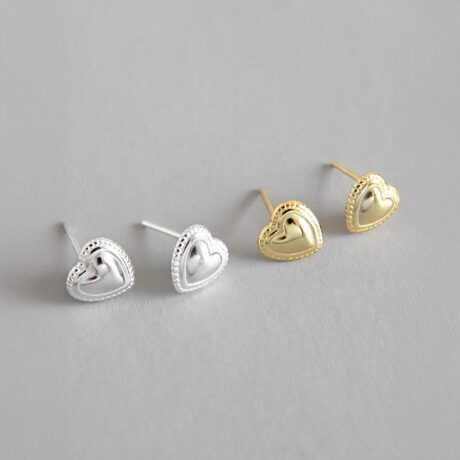 Елегантни обеци от сребро проба 925 с форма на сърце и фин релефен контур. Изчистеният дизайн и деликатният блясък ги правят подходящи за ежедневно носене и лесни за съчетаване с всякакъв стил. Предлагат се в сребрист и златист цвят и са отличен избор за нежен подарък с универсално послание.